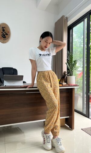 Quần jogger nữ Vario vải đũi in họa tiết trẻ trung VR23-05