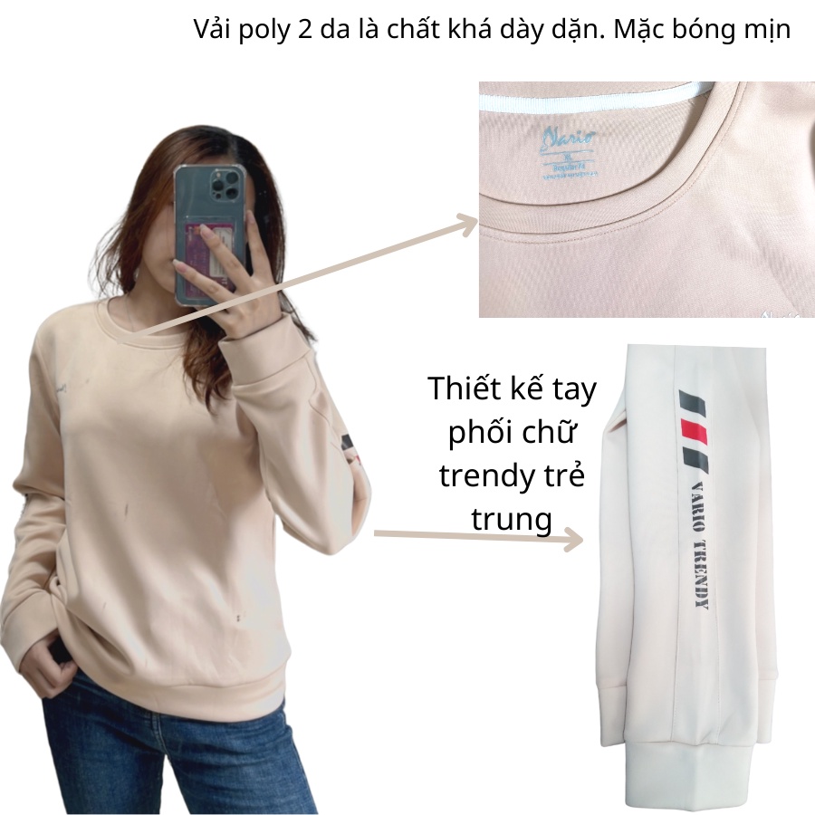 ? Áo cổ tròn trẻ trung, năng động, hai tay phối in chữ Vario Trendy trẻ trung