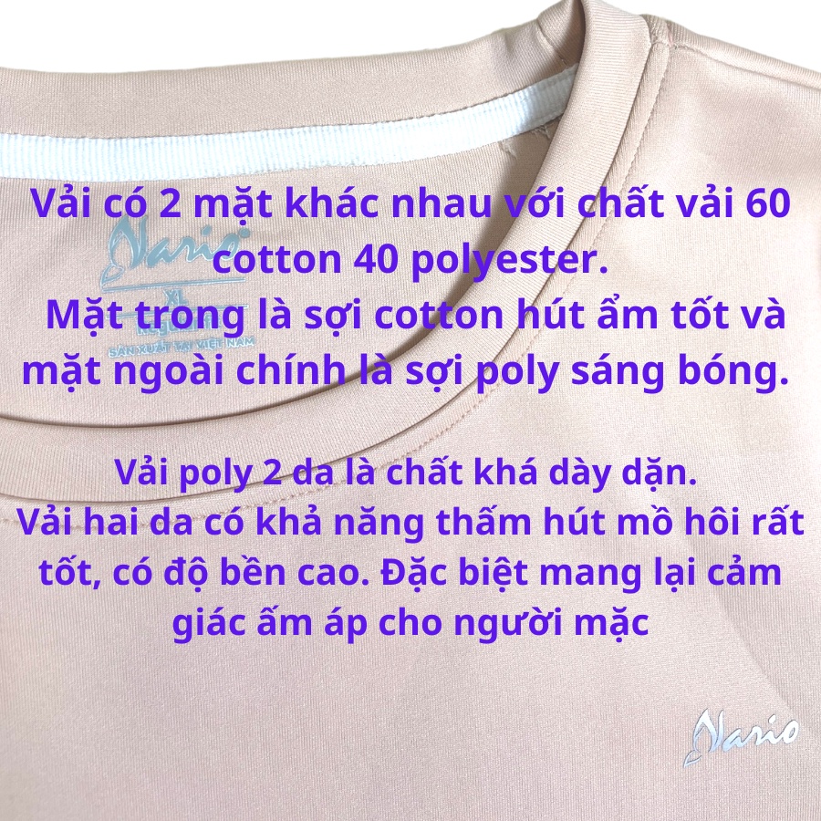 ? Áo được may bằng vải 2 da, 2 mặt hoàn toàn khác nhau, mặt trong là cotton thấm hút mồ hôi, mặt ngoài là sợi Poly bóng mịn