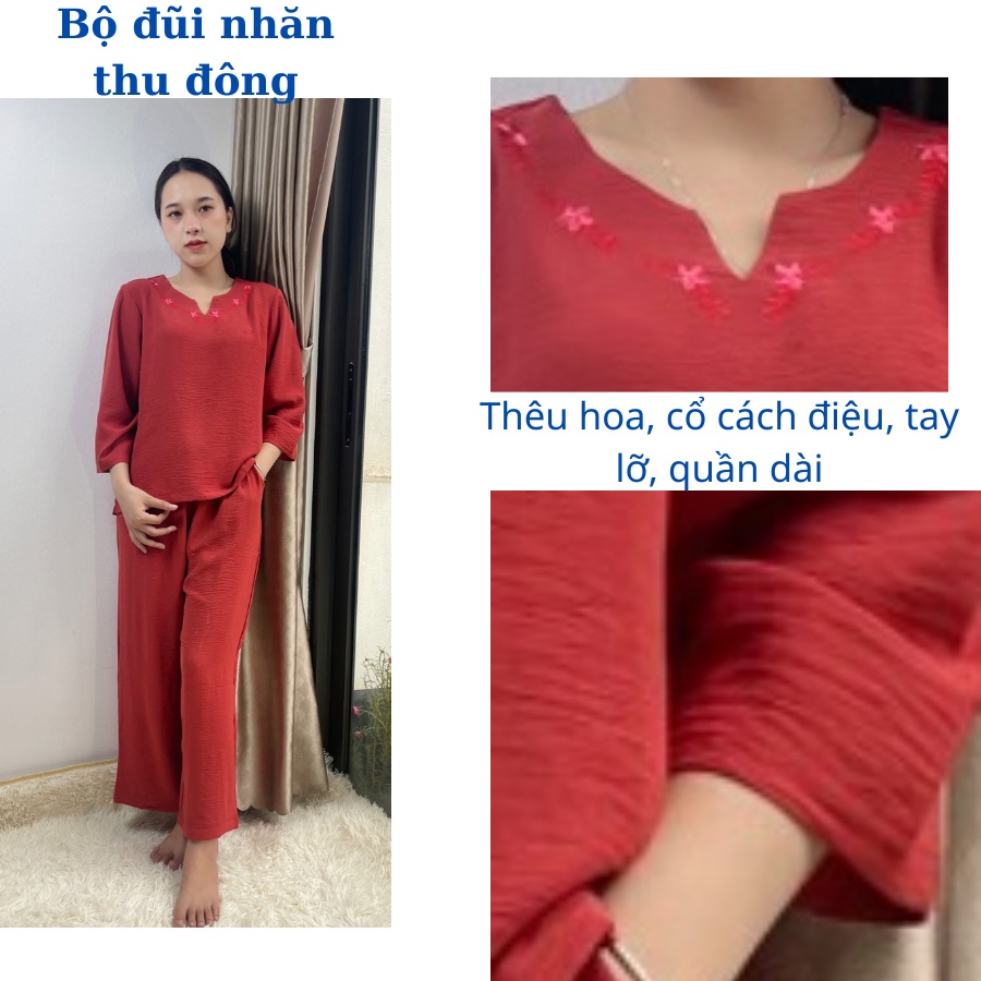 BỘ ĐŨI NHĂN THU ĐÔNG TRUNG TUỔI NỮ COTTON NỮ VARIO( TAY LỠ, QUẦN DÀI)
