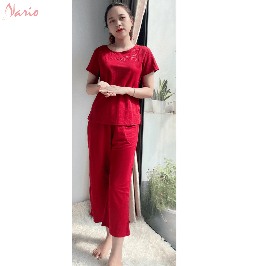 BỘ ĐŨI THÊU HOA TRUNG TUỔI NỮ COTTON VARIO