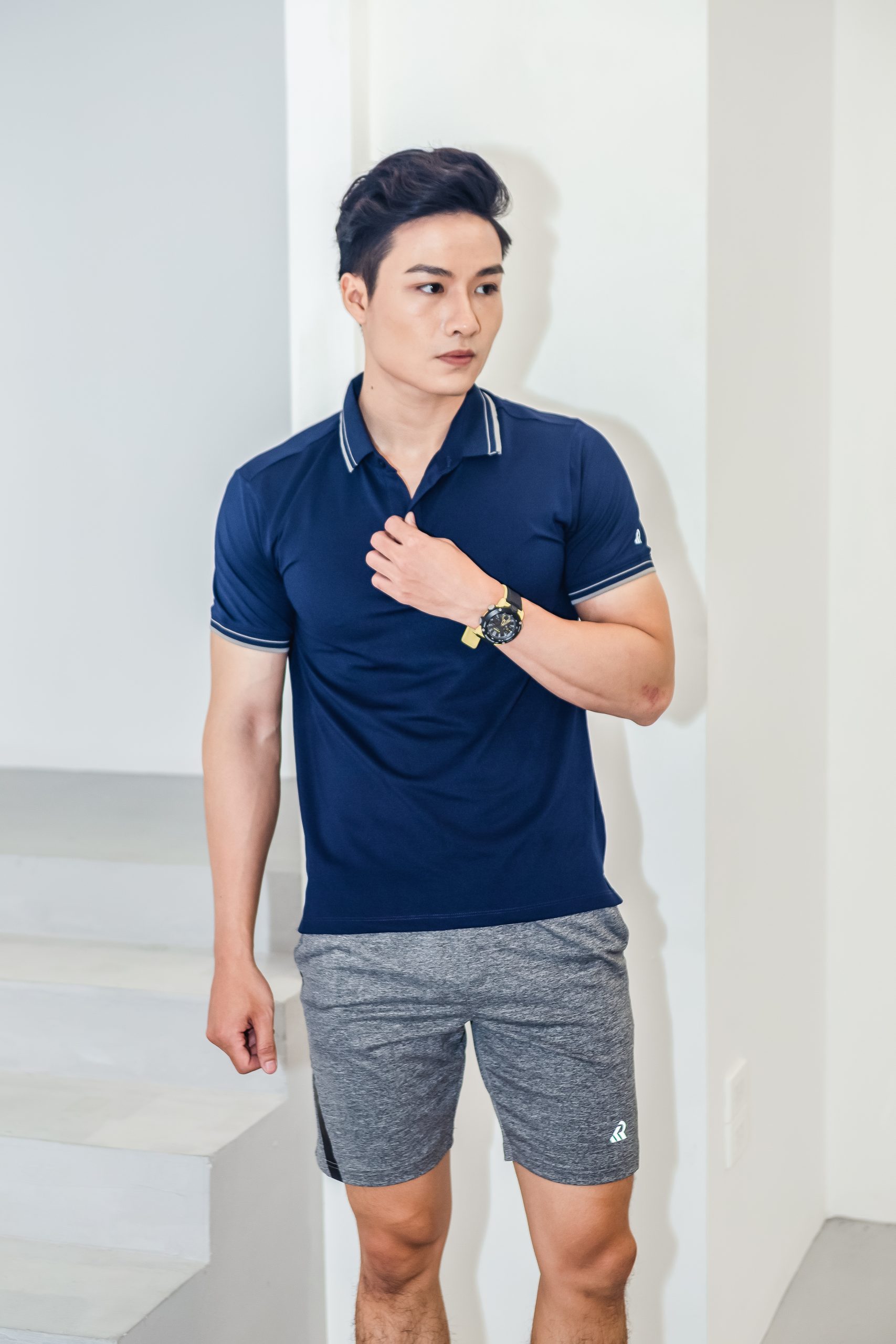 Kiểu dáng: Áo polo cổ dệt phối kẻ